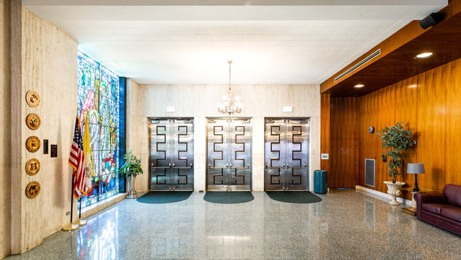 The Shrine prayer space reincorporates key artifacts from the original Shrine on 63rd Street. The reliquary containing the first class relic of St. Rita dates back to 1906. The statue of St. Rita dates back to 1909 and was one of the first statues with glass eyes to give the statue a realistic appearance. The stained glass windows that now flank the statue of St. Rita depict the thorns and roses of St. Rita, and the Official Seal of the Augustinian Order, both of which date back to 1932.